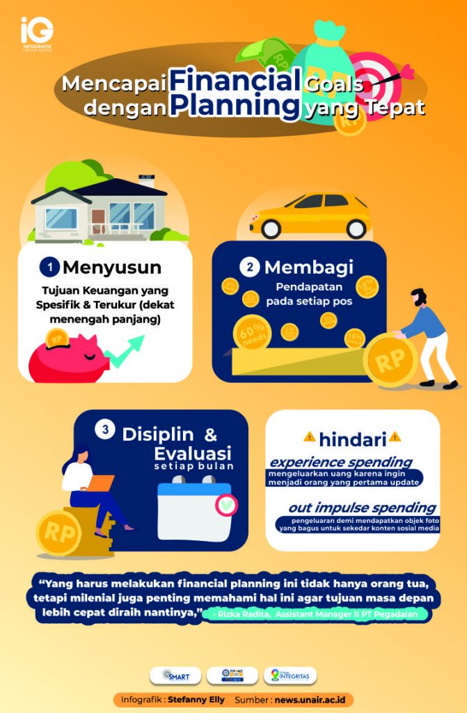 UNAIR NEWS – Rizka Radita, Assistant Manager II PT Pegadaian, menjelaskan bahwa setiap orang yang memiliki tujuan finansial, harus memiliki