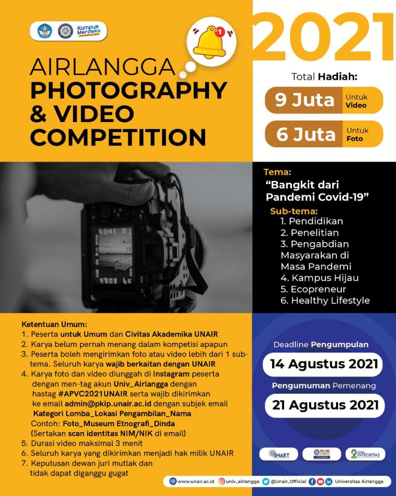 UNAIR NEWS – Pusat Komunikasi dan Informasi Publik (PKIP) Universitas Airlangga (UNAIR) mengadakan lomba fotografi dan videografi 2021 untuk umum.