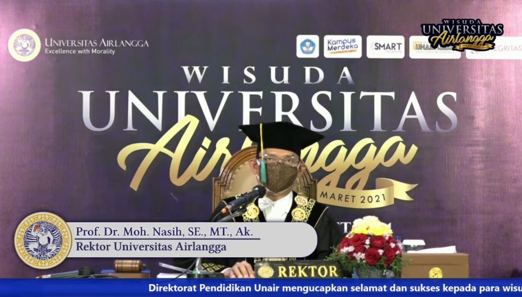 UNAIR NEWS – Hari kedua pelaksanaan wisuda periode Maret 2021, Rektor Universitas Airlangga (UNAIR) Prof. Dr. Mohammad Nasih, SE., MT.,